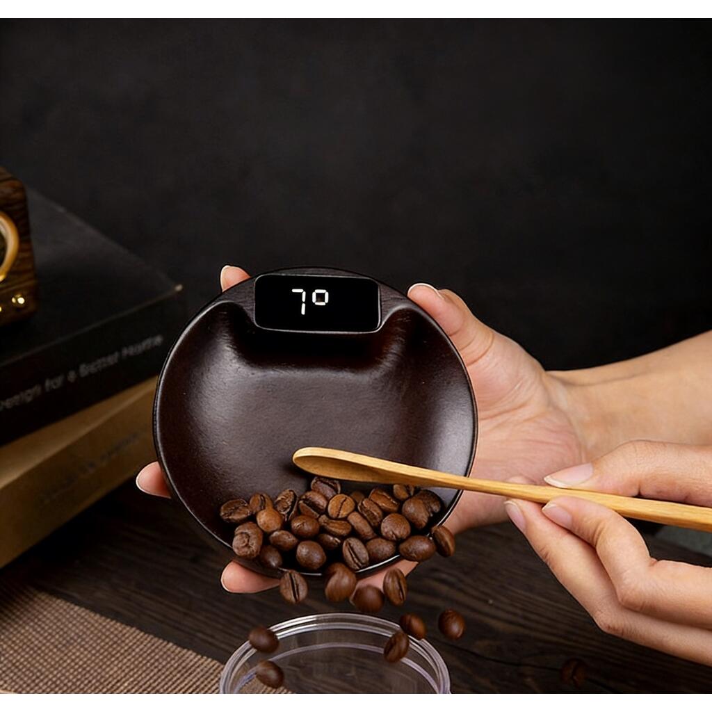 Весы чайно-кофейные портативные коричневые 0,1-100гр d10,3 см h2,7 см дерево батарея 100mAH Barbossa