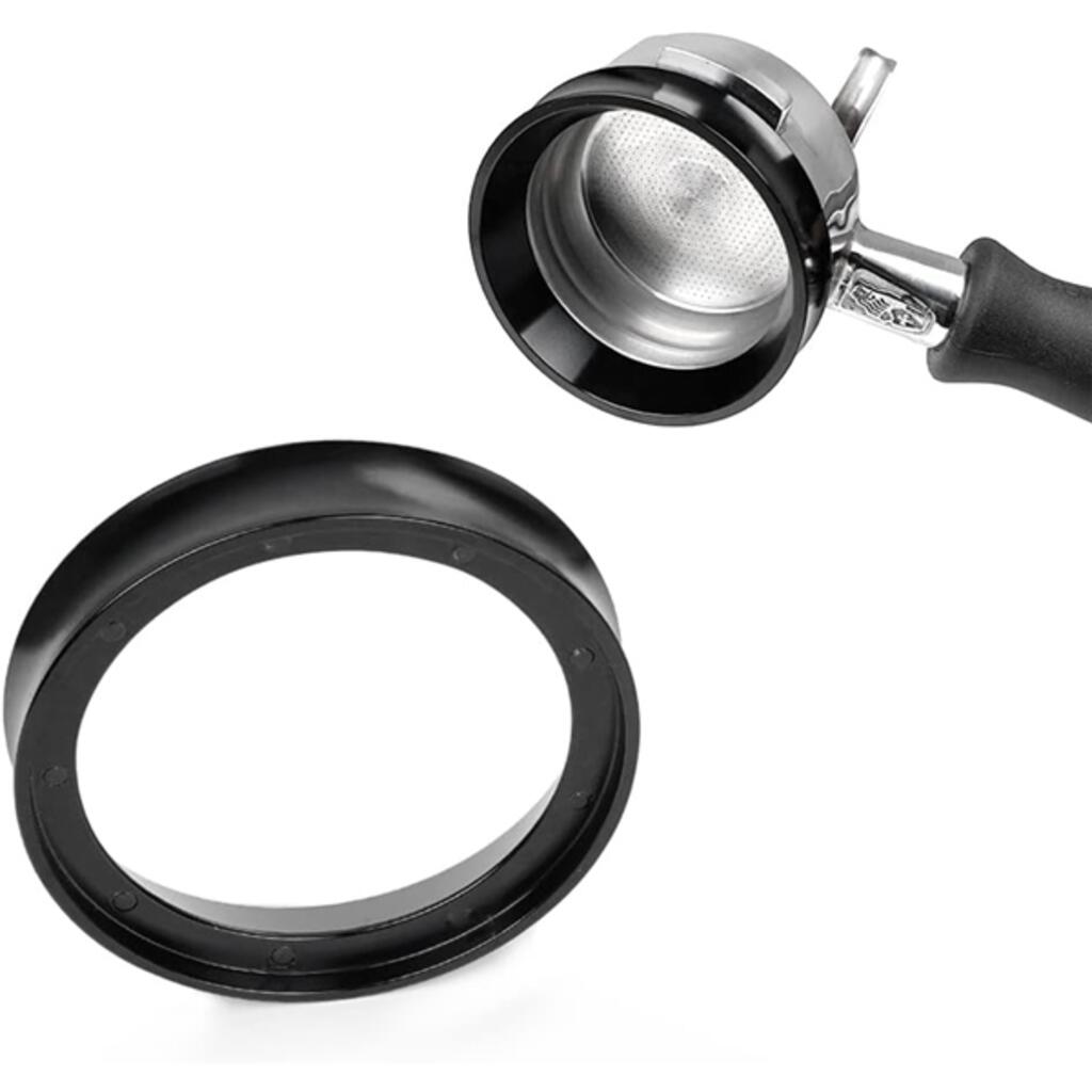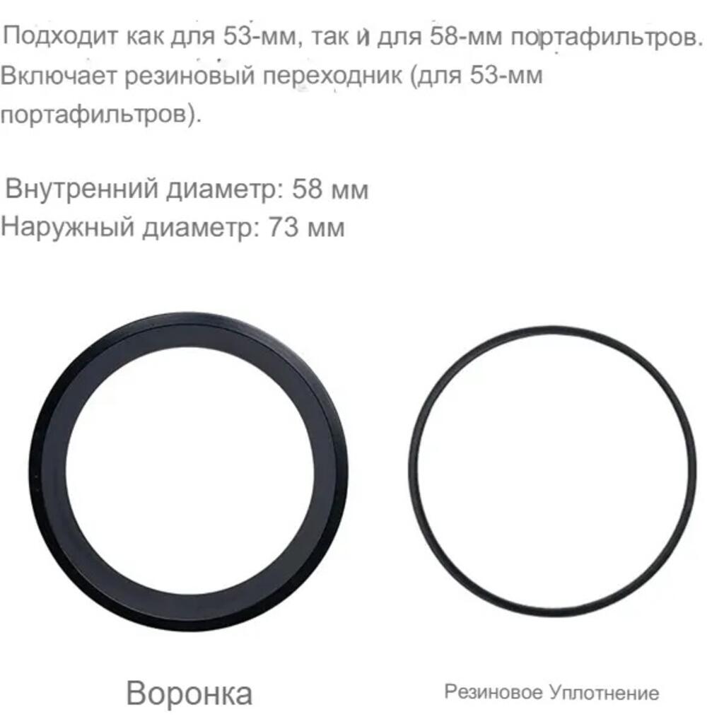 Кольцо воронка для дозирования подходит для большинства холдеров (портафильтров) диаметром 58 мм. Диаметр внутреннего кольца: 58 мм; диаметр отверстия: 68 мм; высота: 14 мм. Воронка кольцо для дозирования фиксируется на холдере (портафильтре), предотвращая рассыпание порошка, его перерасход и беспорядок на рабочей поверхности. Просто поместите воронку на холдер (портафильтр) во время помола, распределения и трамбовки кофе, а по завершении легко снимите ее. Дозирующее кольцо воронка изготовлено из пищевого алюминия, прочного и долговечного, не подверженного коррозии. Служит долго. Необходимый аксессуар для приготовления кофе. Дозирующая воронка легкая и компактная, простая в использовании и установке. Просто промойте ее водой и очистите щеткой или губкой.