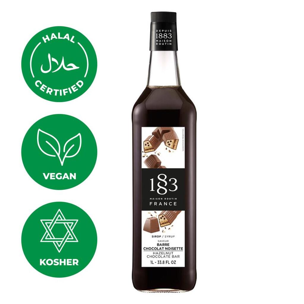 Сироп 1883 Шоколадный батончик обладает неотразимым вкусом шоколада и сливочного фундука. Этот шоколадный сироп изготовлен из тщательно отобранных ингредиентов, включая чистую альпийскую воду и чистый тростниковый сахар.