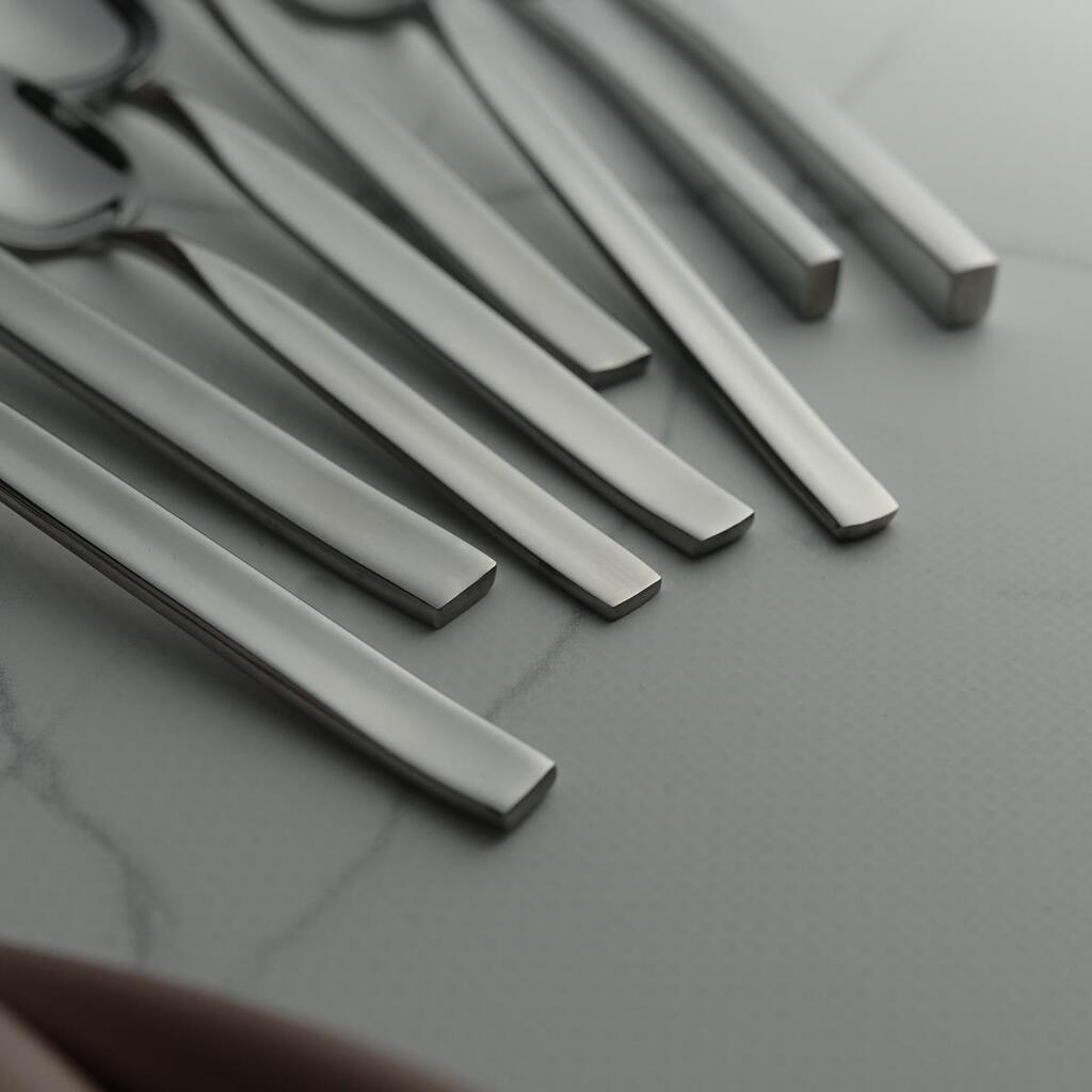 Облегченные рукояти с лаконичными формами. Прямые линии и четкие углы придают приборам своеобразный шарм.