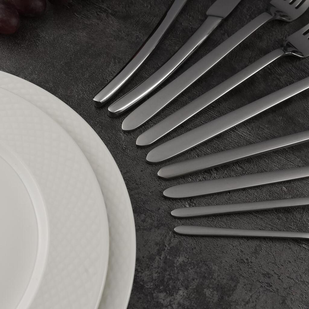 В серии столовых приборов «Nabur» от бренда «P.L. Proff Cuisine», представлен достаточно широкий выбор предметов, благодаря этому она отлично подойдет для большинства заведений. "Изюминка" дизайна – узкие рукояти, которые заканчиваются заостренным уголком.
