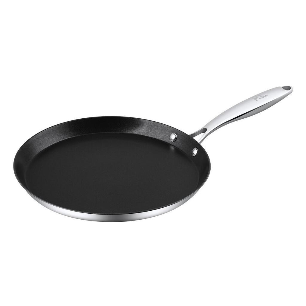 Толщина сковородки 2,5 мм. Поверх нержавеющей стали нанесено качественное двухслойное антипригарное покрытие "DAKIN Etching"