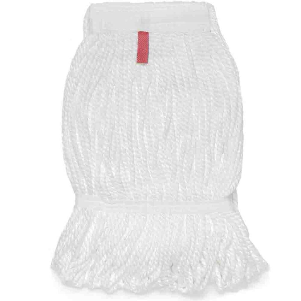 Прошитый, веревочный моп из 100% микрофибры. Особенность данного материала в том, что он впитывает только то количество воды, которое весит сам. Это позволяет мопу не впитывать лишнюю влагу и, соответсвенно, не становиться более тяжелым. Моп предназначен для уборки больших площадей, хорошо собирает грязь, не оставляет разводов и не гниет. Моп можно стирать в стиральной машине при температуре 60 градусов, но сушить моп в стиральной машине запрещено. Также моп не подлежит отбеливанию.